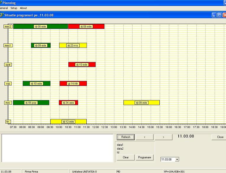 - programarea unei masini se face astfel:se face click pe echipa dorita,mergem pe graf in dreptul comenzii la data si ora initiala la care vrem sa le programam,apoi click pe ora finala;aplicatia completeaza toate "patratelele" in acest interval orar