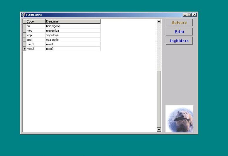 - Posturile de lucru se definesc de catre utilizator, fiecare post de lucru fiind reprezentat printr-o culoare distincta.
