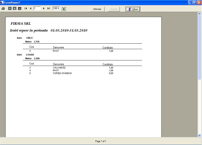 - Masina intra la reparat, se scot materiale cu unul sau mai multe bonuri de productie. Bonurile de productie se lanseaza cu butonul Bon din comanda .La o deschidere ulterioara a comenzii vom regasi materialele scoase cu bonurile de productie in banda de repere iesite aflata in partea de jos a ferestrei.