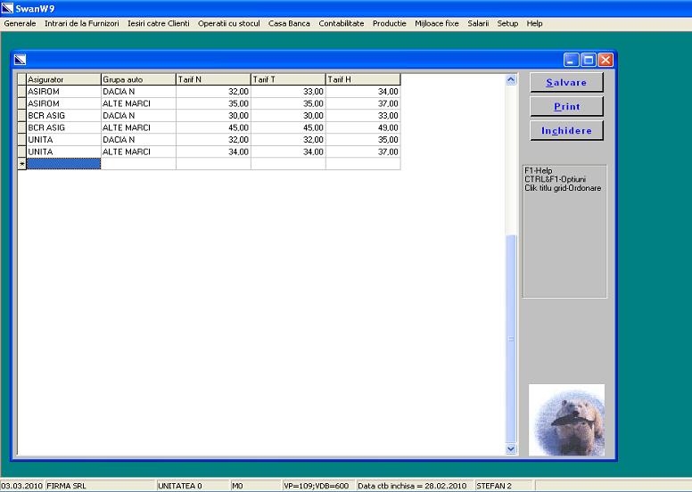 - Grupa –se completeaza in situatia in care reparatia masinii este suportata de un asigurator; numele asiguratorului este preluat dintr-o lista de asiguratori, predefinita in Setup-ul aplicatiei